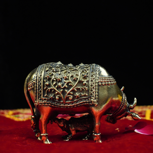 Invite blessings of prosperity, purity, and fulfillment into your home with this exquisite Antique Brass Kamdhenu. Handcrafted with intricate detailing, this sacred symbol of divine abundance carries a rich heritage and spiritual significance.