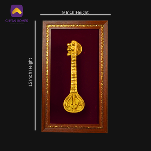 Celebrate the beauty of Indian classical music with this exquisitely crafted Brass Sitar Frame, designed to bring culture, elegance, and artistic charm into your home. The centerpiece features a finely detailed handmade brass sitar, mounted on a rich velvet background that enhances its golden brilliance.
