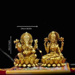 Lord Ganesha, the remover of obstacles, brings success, clarity, and new beginnings, while Goddess Lakshmi, the harbinger of wealth and prosperity, blesses your home with abundance and harmony. The antique brass finish gives the idols a timeless charm, making them perfect for pooja spaces, festive décor, work desks, or gifting.